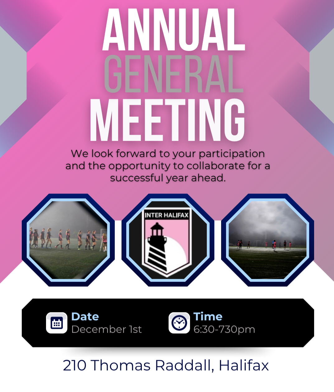 In compliance with Inter Halifax Soccer Association by-laws and partnership agreement, Inter Halifax shall hold Board of Director elections and an annual general meeting after its second year of operations. The Annual general meeting will take place as follows: